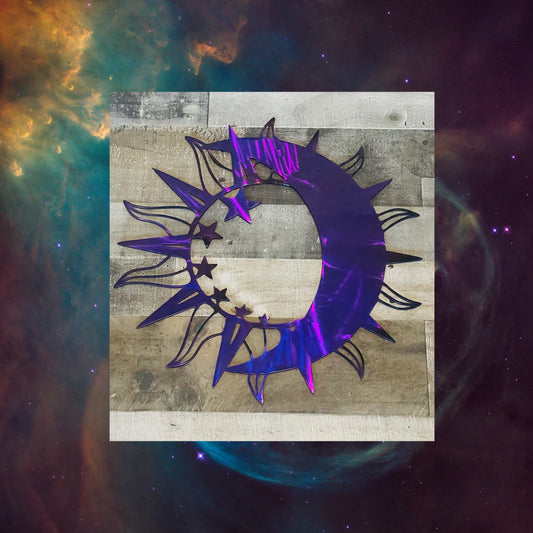 Flare Sun , Metal Sun 6, Fire Affect, Metal Wall Art, Cosmic Art, Moon, Star